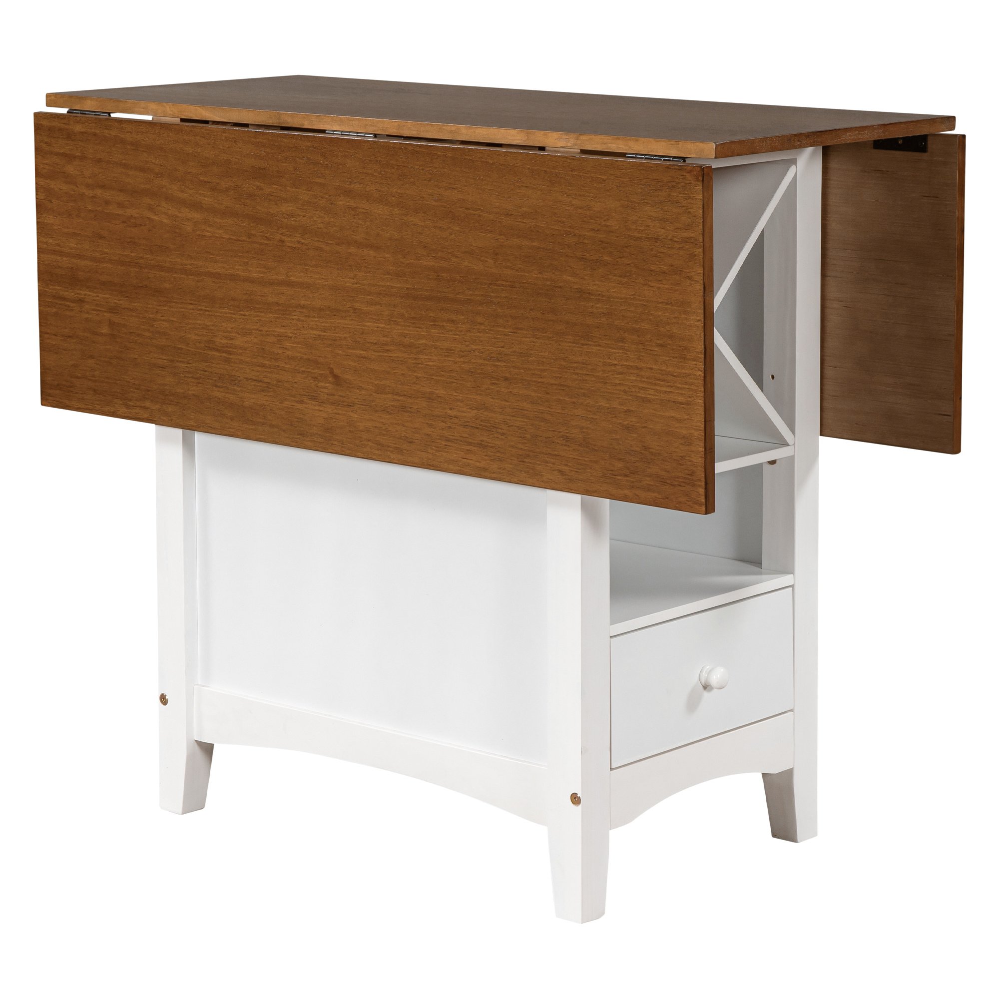 1.Extendable Drop Leaf Table Set : Both sides of the table are designed to be foldable. Extendable design makes the table be space-saving, which can be folded to release more space. This lovely design will be perfect for family or friends gatherings of all edges with its 15-inch leaf in each side . Enjoying your dining time when you open the panels.
